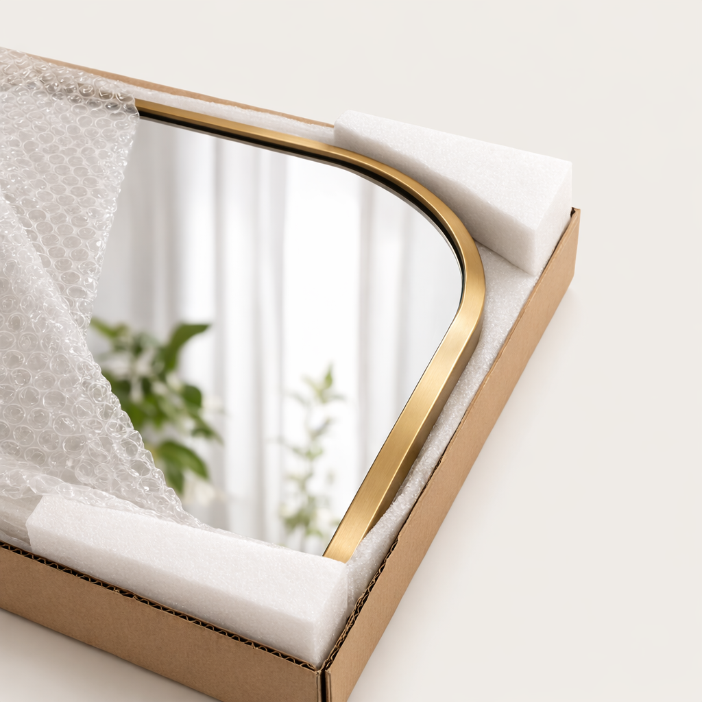 Vi packar alla våra speglar omsorgsfullt så att de kommer fram i perfekt skick. Vi använder högkvalitativa förpackningsmaterial och samarbetar med pålitliga transportörer.